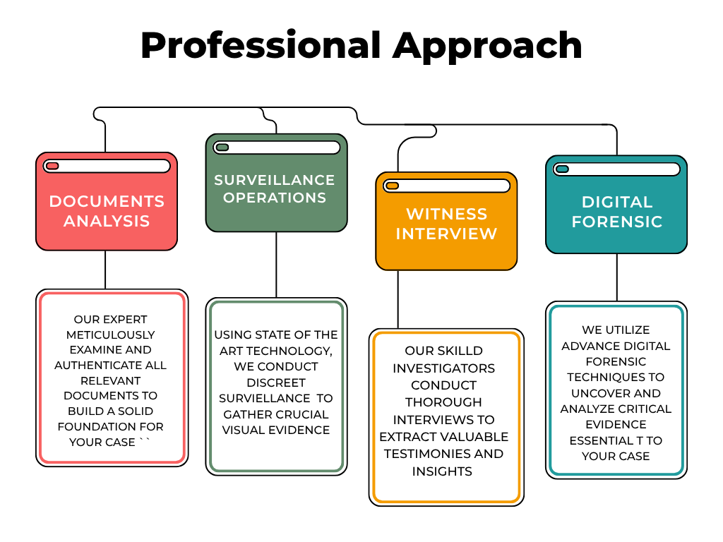 At Fine Eyes Investigations, we follow a meticulous, multi-layered approach to ensure every investigation is thorough, precise, and results-driven. Our team combines experience with modern investigative techniques to uncover the truth and provide solid, actionable insights. Here’s how we approach every case:
